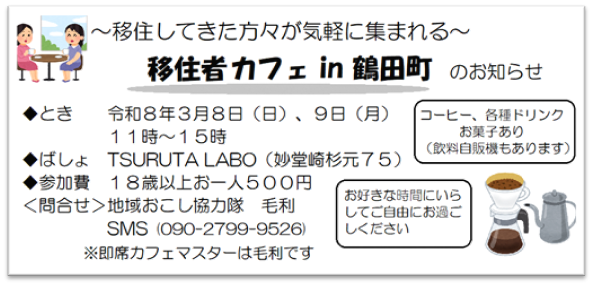 即席のカフェマスターは、地域おこし協力隊3年目の毛利精悟が務めます。