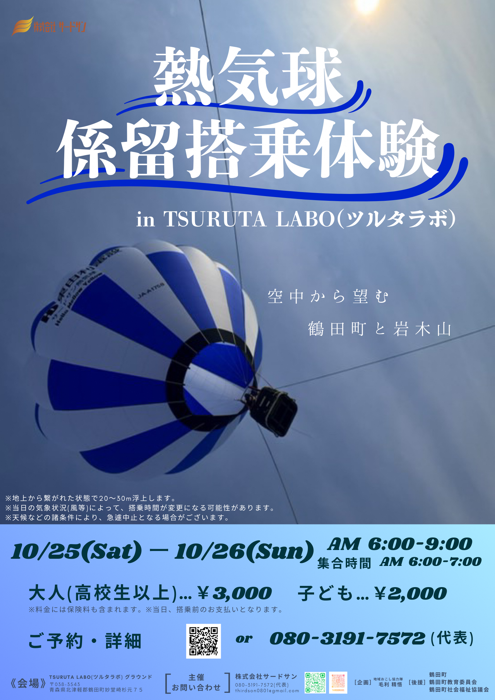 TSURUTA LABO 多目的屋外広場(グラウンド)にて、熱気球体験会が開催されます。